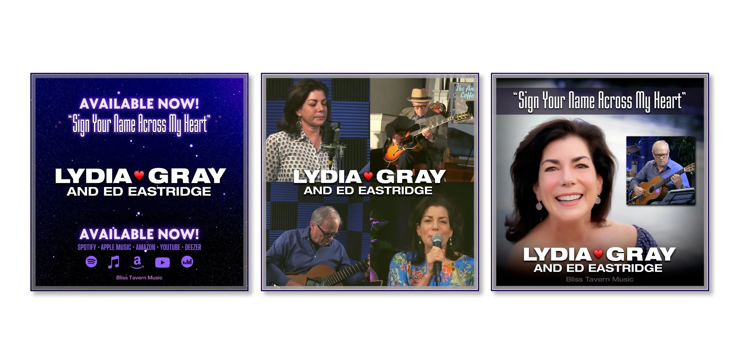 SP Studios designs and produces marketing materials for BLISS TAVERN MUSIC PRODUCTION, LLC Recording Artist Lydia Gray. In addition to the Bliss Tavern Music Production logo and identity design and Social Media Video posts, the work includes original design with digital retouching; creating online Instagram & Facebook animated social media posts and pre-release posts; writing and distributing press release; development of ‘Spotify for Artists’ verified artist account and profile; development, writing, and pitching a successful ‘Spotify Playlist Pitch’; working with distribution platform (CD-Baby) and managing pre-release pre-orders/pre-saves for Spotify audience; managing monthly post-release Spotify ‘Discovery Mode’ campaigns; designing and producing artist social media posts and website. This particular animated post promotes reaching the milestone of one million streams on Spotify for the song “Sorry Seems to Be the Hardest Word” by Bliss Tavern Music Production musical artist Lydia Gray.